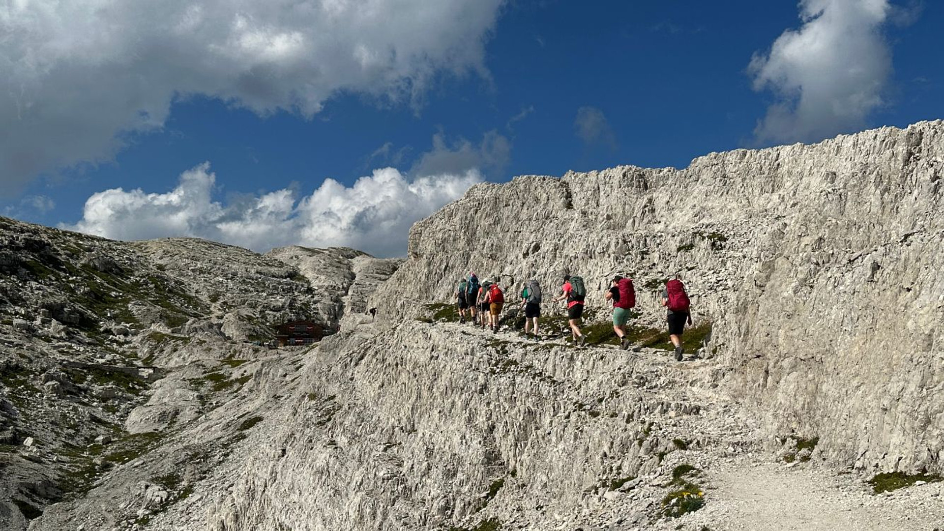 We start today’s hike along the familiar military road south – east of the lodge towards the Valun Blanch. Again remnants of the history of the area are revealed to us along the trail. Our path zig-zags up to Monte Ciastel, an intersection point along the “Sentiero della pace” (the Path of Peace) where we are met with incredible views over the Tofane mountains and Val Travenzes. We stop for a picnic lunch, explore the bivouac shelter and spend some time connecting with the elements, history and views of this point before descending back the way we came.